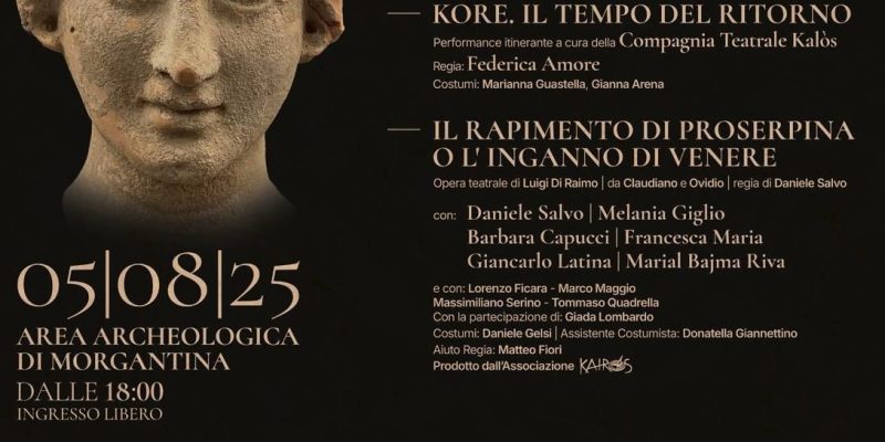 Questa edizione, infatti, è un omaggio al tempo, alla memoria e al coraggio di chi custodisce la bellezza. Ma è soprattutto un’edizione con una vocazione chiara: educare, raccontare, rendere accessibile il mito di Proserpina/Kore a chiunque. Anche a chi non lo conosce. Attraverso il teatro, tra le rovine sacre del sito archeologico di Morgantina, il pubblico sarà accompagnato alla scoperta del mito nelle sue due versioni – greca e latina – in modo coinvolgente, comprensibile, emotivo. Nessuno tornerà a casa senza aver conosciuto questa storia fondativa, che ancora ci parla.