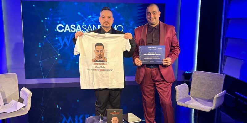 I protagonisti, l’attore e personaggio tv Nunzio Bellino e lo scrittore e regista Giuseppe Cossentino, hanno presentato il libro Cuore elastico nell’ambito di Casa Sanremo Writers, portando al pubblico e ai media un messaggio sociale forte e necessario: “Sono raro, ma non sono diverso.”