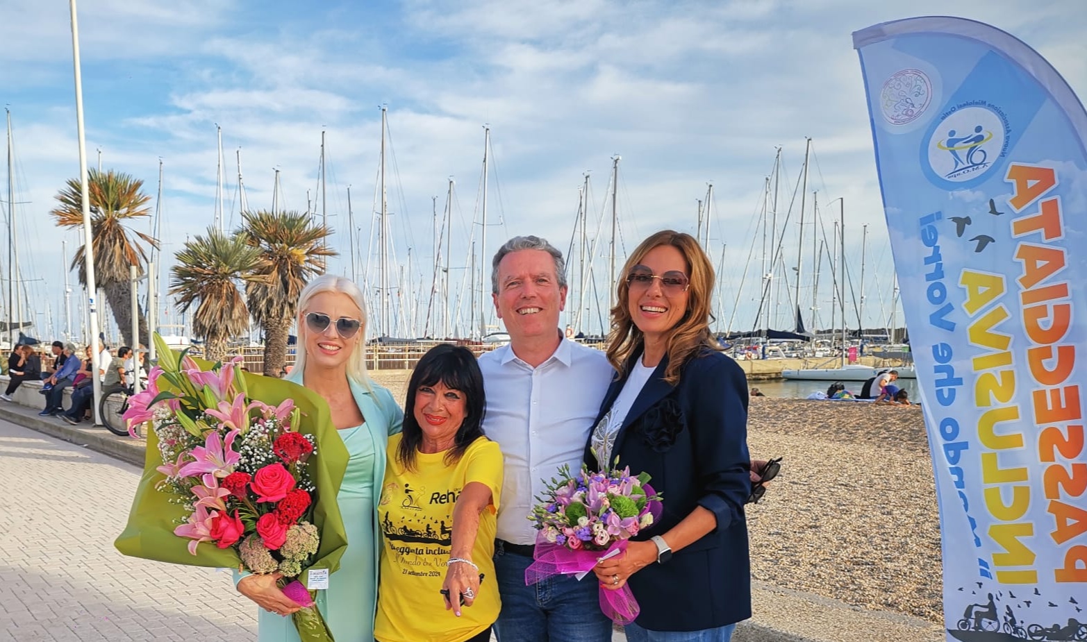 Grande partecipazione della Seconda Edizione alla passeggiata inclusiva, che si è tenuta partendo dal Porto turistico di Roma,procedendo il percorso ad anello sul Lungomare di Ostia,per concludere al Porto turistico.