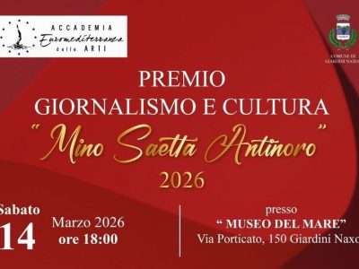 Il 14 Marzo a Giardini Naxos, al Museo del Mare, alle ore 18:00, l’Accademia Euromediterranea delle Arti, presenta, il Premio Giornalismo e Cultura ...